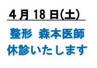 NEW4/18(土)森本医師休診します。