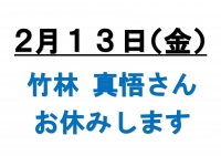 NEW2/13(金)お休みします。