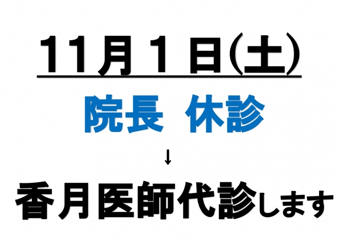 11/1(土)院長 終日休診いたします。 香月医師が代診します。